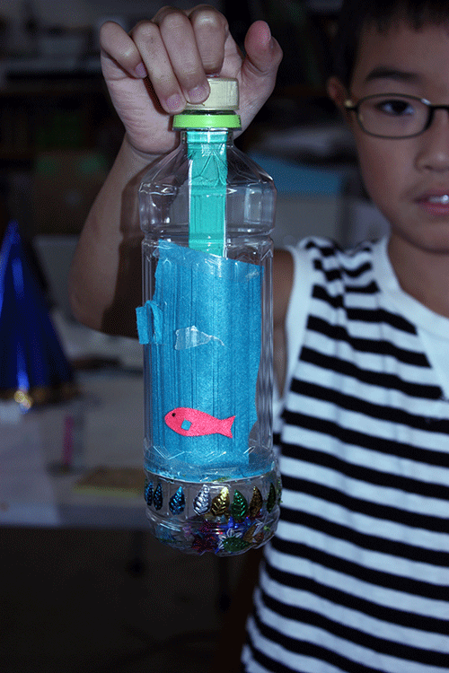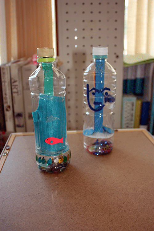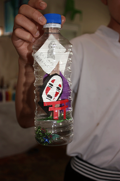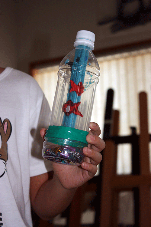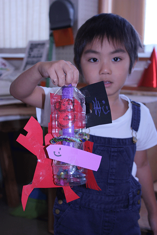 筒をペットボトルにしたので、中にも外にも装飾を加えることができます。