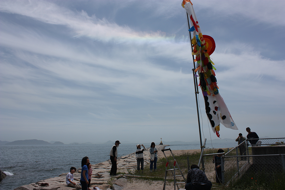 残念なことに風はあまり吹いていませんでしたが、上空には虹が出ていました。
