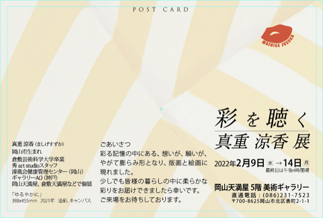 さてスタッフの真重 涼香の展覧会のご案内を差し上げます。